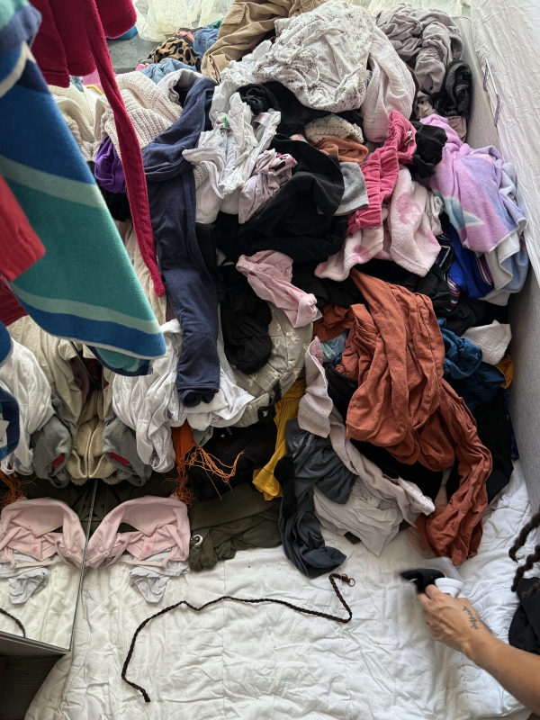 Een kast opruimen.